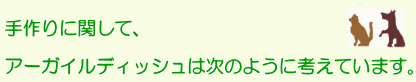 アーガイル・ディッシュは現在のドライやウェットの総合栄養食はパーフェクトだとは思っていません。また、犬猫の栄養については、まだ研究途中で判明していない部分もあることは事実です。それでも栄養について充分に学んだ方でない限りまたは特別な事情のない限り、ベースは栄養基準を満たしたフードであって欲しいと思っています。 その上でフレッシュなエネルギーを愛する子達にバランスよく与えて欲しいと思っています。